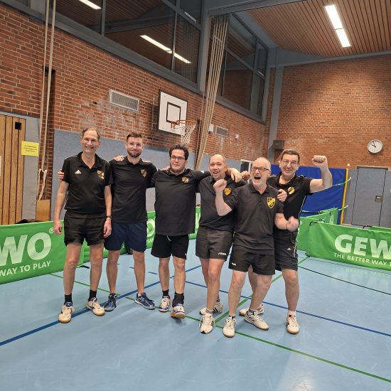 Erster Punkt der Tischtennisspieler der 3. Herren. In einer geschlossenen Mannschaftsleistung rang die Truppe dem Tabellen 3. ein 8:8 ab. Den Grundstein lieferte das untere Paarkreuz mit Peter und Patrick mit jeweils 2 Siegen. Die oberen Spieler lieferten mit jeweils