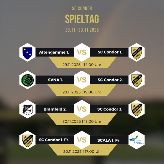 Unsere Teams sind am Wochenende wieder im Einsatz 💛🖤 Kommt vorbei und unterstützt den SC Condor!