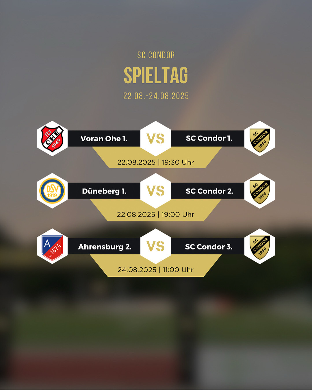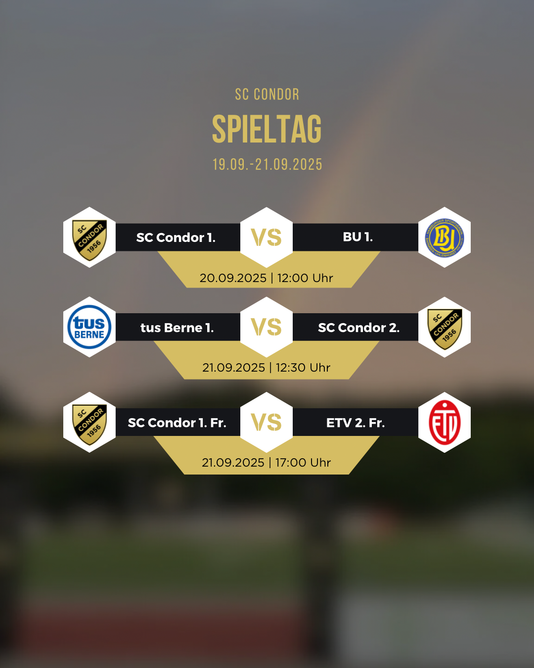 📣 Letzter Spieltag der Saison 24/25! Am Sonntag heißt es ein letztes Mal für diese Saison: Auf geht’s, Condor! 🟡⚫ Gleich drei Heimspiele stehen an, und die Mannschaften freuen sich auf eure lautstarke Unterstützung! 🙌