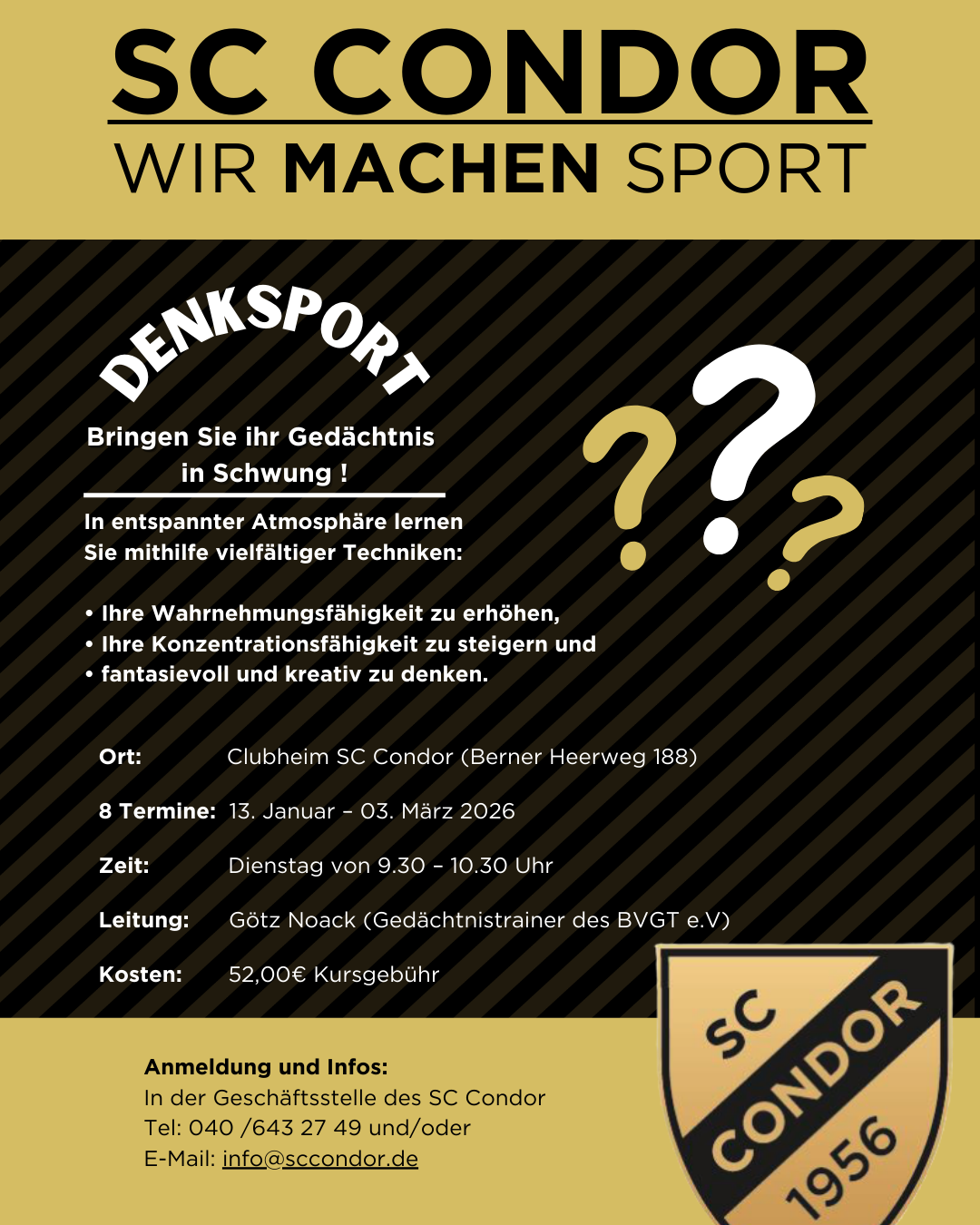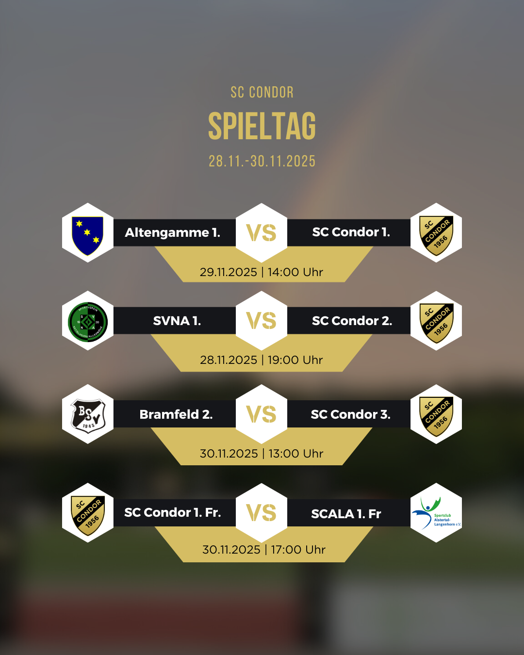 20. August 2025 Neues, News, Startseite Spielplan 4. Augustwochenende Unsere Teams sind am Wochenende wieder im Einsatz 💛🖤 Kommt vorbei und unterstützt den SC Condor! SHARE 0